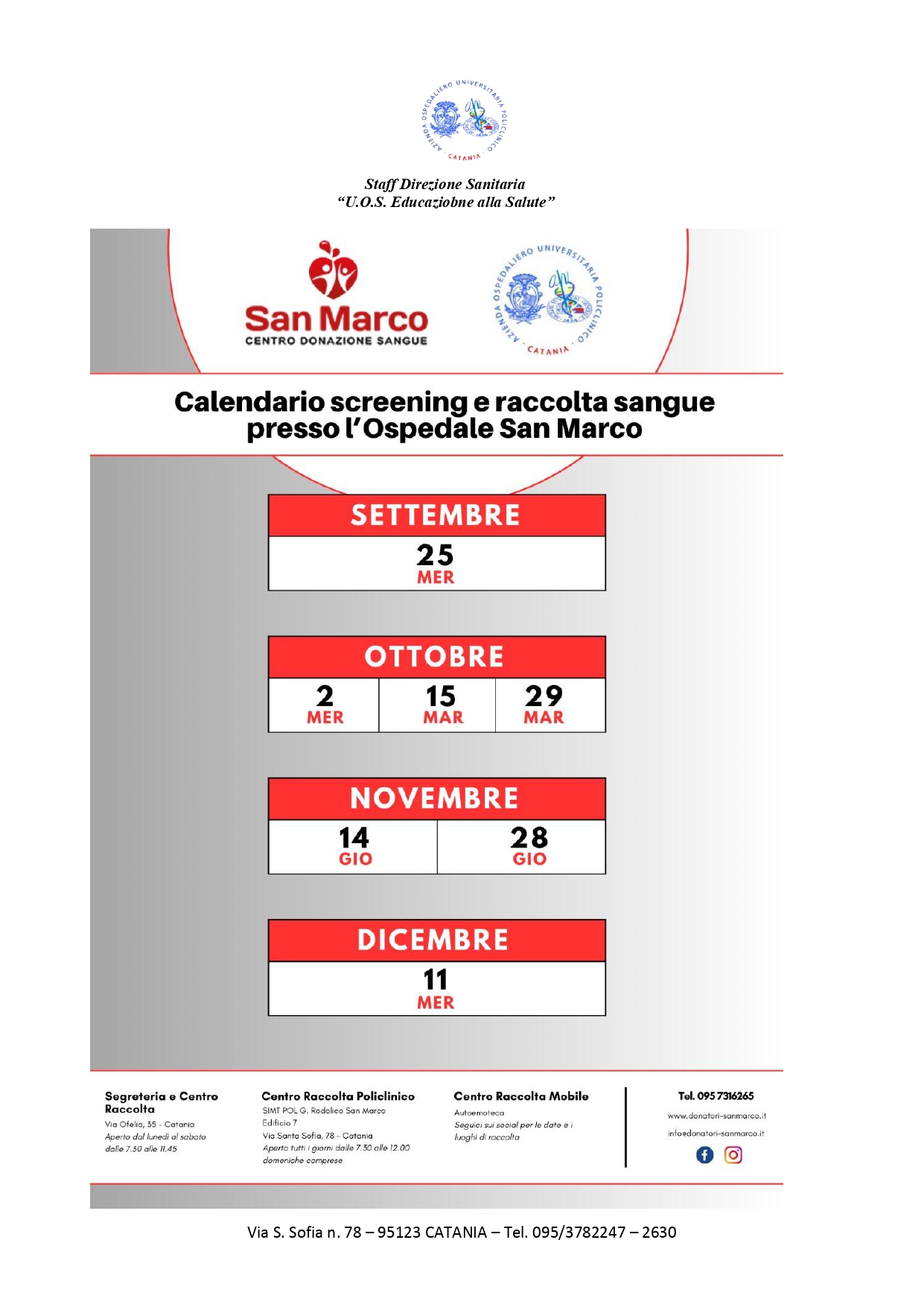 SCREENING E RACCOLTA SANGUE PRESSO L’OSPEDALE SAN MARCO