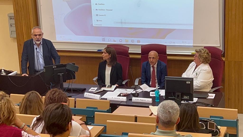 Azienda Ospedaliero Universitaria Policlinico “G.Rodolico – San Marco” Catania Catania, 27 settembre 2022 COMUNICATO STAMPA POLICLINICO: SUCCESSO PER LA II GIORNATA AZIENDALE PREVENZIONE E SALUTE I dipendenti dell’AOU Policlinico “G. Rodolico – San Marco” quali “facilitatori” con il compito di comunicare ai cittadini la giusta strada verso il benessere e la salute attraverso percorsi di prevenzione delle malattie. La prevenzione resta infatti la via fondamentale per salvare vite umane, come mostrano i dati siciliani raccolti negli ultimi anni, secondo i quali, ad esempio, più della metà di coloro che sono stati colpiti dal cancro, uomini e donne, sono riusciti a guarire proprio grazie a diagnosi precoci che hanno consentito un rapido intervento arrivando a bloccare la malattia. Per diventare i migliori portavoce del benessere e i più indicati a promuovere le attività di controllo, diagnosi e cura offerte dall’azienda ospedaliero universitaria, i dipendenti devono avere una formazione adeguata che li aggiorni costantemente sulle novità aziendali nei trattamenti delle patologie e nel tipo di assistenza sanitaria a disposizione dei cittadini. L’AOUP ha così istituito la giornata aziendale “Prevenzione e Salute”, giunta alla seconda edizione, quest’anno dedicata alla formazione specifica sulle attività che vengono svolte nei due presidi ospedalieri, “Rodolico” e “San Marco”, in materia di prevenzione dei tumori ginecologici e di quelli cutanei, due dei più diffusi tra la popolazione. L’evento, organizzato in azienda dall’Unità Operativa Semplice “Educazione alla Salute” retta da Rosalba Quattrocchi con la collaborazione del dirigente dell’UOS “Formazione e Aggiornamento”, Angelo Gambera, ha visto la presenza numerosa dei lavoratori che hanno seguito con particolare interesse ogni tema trattato in aula, partecipando ai confronti che sono seguiti agli interventi. Ad intervenire sono stati i ginecologi Marco Iraci Sareri sulla patologia tubo/ovarica, Maria Grazia Matarazzo sulla patologia endometriale e Giuseppe Sarpietro sulla patologia cervicovaginale e vulvare. Non meno interessante la relazione della dermatologa Alice Ramondetta sul melanoma e non melanoma skin cancer. Durante l’evento sono stati presentati alcuni degli obiettivi della UE Europe’s Beating Cancer Plan ‘Target 2030’ riguardo ai tumori ginecologici. Tra questi il raggiungimento in Europa, entro il 2030, del ciclo completo di vaccinazione contro l’HPV per il 90% delle adolescenti con 15 anni di età; lo screening per prevenire il cancro cervicale con test HPV ad alta precisione per il 70% delle donne tra i 35 e i 45 anni di età e il corretto trattamento per il 90% delle pazienti. La giornata “Prevenzione e Salute”, aperta dai saluti istituzionali del direttore sanitario Antonio Lazzara, è stata introdotta da Rosalba Quattrocchi che ha spiegato i motivi della prevenzione della malattie e il ruolo dei professionisti sanitari, e dalla dirigente medica Rosalia Ragusa su “il valore dell’epidemiologia: conoscere i dati per programmare interventi efficaci”. Anche quest’anno, infine, verranno replicate le due giornate “open day” nelle Unità Operative interessate dal seminario, con attività di counseling o visite specialistiche, ginecologiche e dermatologiche, dedicate ai dipendenti aziendali. MP