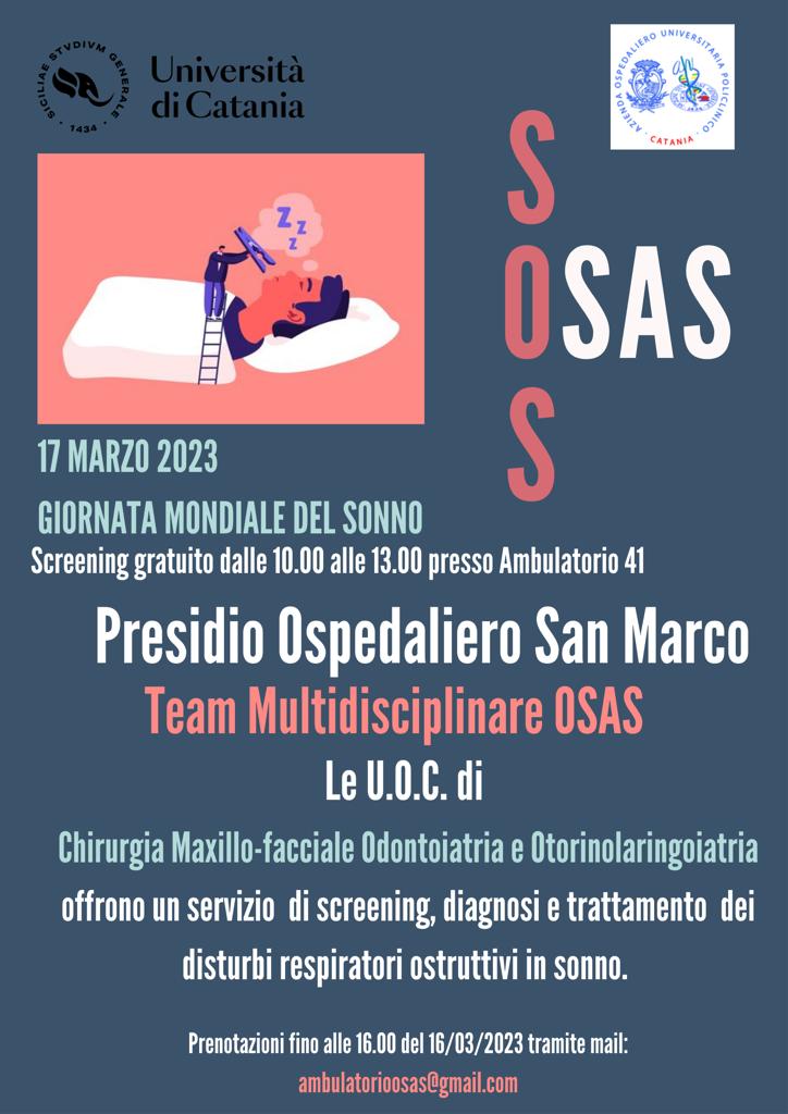 OSAS (Sindrome delle Apnee Ostruttive del Sonno), venerdì 17 marzo 2023, screening gratuiti al San Marco. Prenotazioni via email fino ad esaurimento dei posti disponibili