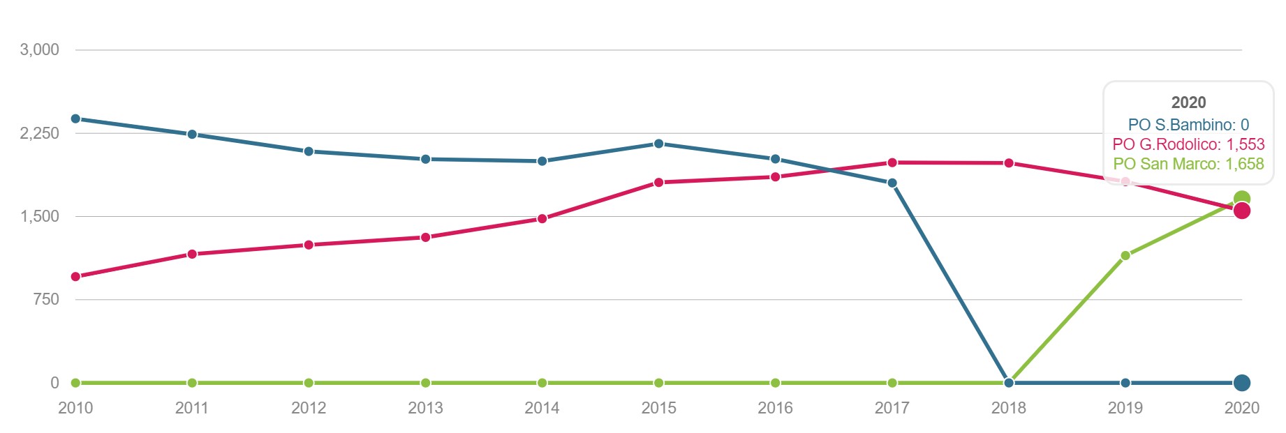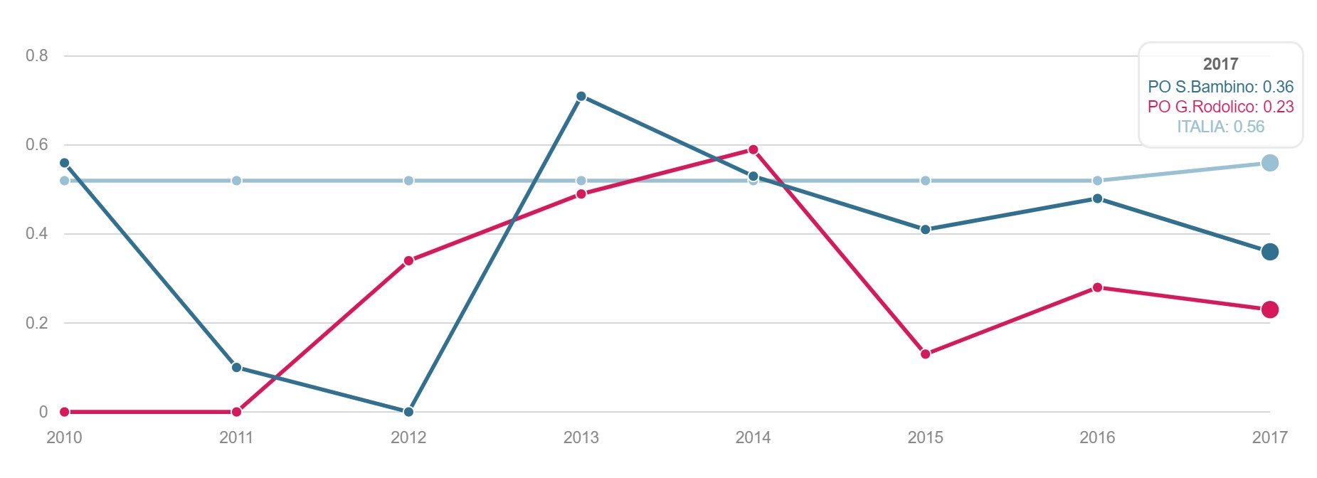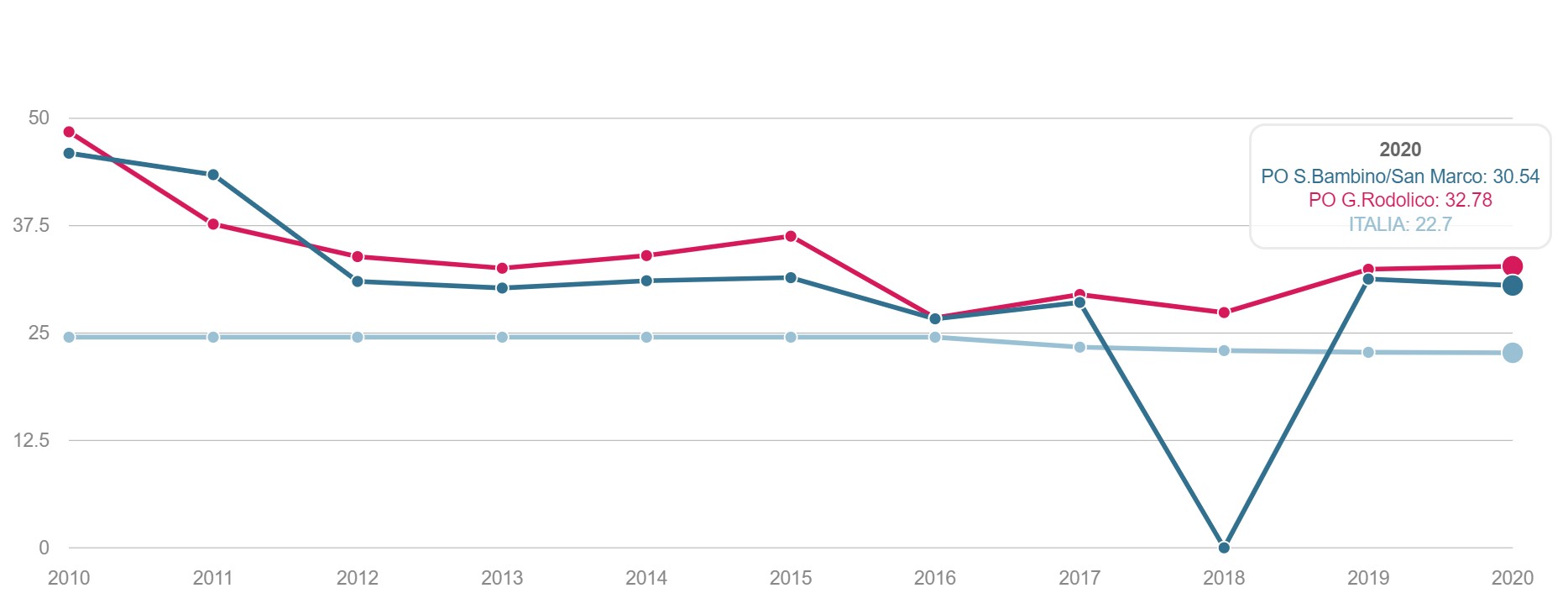 Parti Volume dei ricoveri Per area di residenza: volume di parti Parti Taglio cesareo primario Per struttura di ricovero o area di residenza:numero di tagli cesarei primi per 100 parti Parti vaginali Pregresso parto cesareo Per struttura di ricovero: numero di parti vaginali in donne con pregresso cesareo per 100 parti. Parto naturale Ricoveri successivi durante il puerperio Per struttura di ricovero e per ASL di residenza: Proporzione di ricoveri per parto seguiti entro 42 giorni dalla data di ammissione da almeno un ricovero ospedaliero ordinario per acuti con degenza ≥ 2 giorni Parto naturale Complicanze Per struttura di ricovero: Proporzione di complicanze materne gravi entro i 42 giorni successivi al parto. Parto cesareo Ricoveri successivi Per struttura di ricovero e per ASL di residenza: Proporzione di ricoveri per parto seguiti entro 42 giorni dalla data di ammissione da almeno un ricovero ospedaliero ordinario per acuti con degenza ≥ 2 giorni PARTO CESAREO Parto cesareo Complicanze Per struttura di ricovero: Proporzione di complicanze materne gravi entro i 42 giorni successivi al parto PARTI: VOLUME DEI RICOVERI Definizione Per area di residenza: volume di parti Intervalli di osservazione Intervallo di reclutamento: 1 gennaio 2015 - 31 dicembre 202 PARTI: TAGLIO CESAREO PRIMARIO Definizione Per struttura di ricovero o area di residenza: numero di tagli cesarei primari per 100 parti. Numeratore Numero di parti cesarei. Denominatore Numero totale di parti. L’indicatore è costruito sui parti cesarei primari, definiti come cesarei tra donne con nessun pregresso cesareo. Intervalli di osservazione Possono essere distinti in: intervallo di reclutamento: 1 gennaio 2015– 30 novembre 2020; intervallo di ricostruzione della storia clinica: 2 anni precedenti a partire dalla data di inizio del ricovero per parto PARTI VAGINALI: DONNE CON PREGRESSO PARTO CESAREO Definizione Per struttura di ricovero: numero di parti vaginali in donne con pregresso cesareo per 100 parti. Numeratore Numero di parti vaginali. Denominatore Numero di parti con pregresso cesareo. Intervalli di osservazione Possono essere distinti in: intervallo di reclutamento: 1 gennaio 2015 – 30 novembre 2020; intervallo di ricostruzione della storia clinica: 5 anni precedenti a partire dalla data di inizio del ricovero per parto. PARTO NATURALE: RICOVERI SUCCESSIVI DURANTE IL PUERPERIO Definizione Per struttura di ricovero e per ASL di residenza: Proporzione di ricoveri per parto seguiti entro 42 giorni dalla data di ammissione da almeno un ricovero ospedaliero ordinario per acuti con degenza ≥ 2 giorni Numeratore Numero di ricoveri per parto seguiti entro 42 giorni dalla data di ammissione da almeno un ricovero ospedaliero ordinario per acuti con degenza≥ 2 giorni La riammissione entro 42 giorni dalla data di ammissione per parto viene identificata tramite procedure di record linkage interne allo stesso database del SIO Denominatore Tutti i ricoveri per parto naturale. Intervalli di osservazione Possono essere distinti in: intervallo di follow-up: 42 giorni a partire dalla data di ammissione per parto. intervallo di reclutamento: 1 gennaio 2015 - 31 ottobre 2020; intervallo di ricostruzione della storia clinica: 2 anni precedenti a partire dalla data di ammissione del parto; PARTO NATURALE: COMPLICANZE Definizione Per struttura di ricovero: Proporzione di complicanze materne gravi entro i 42 giorni successivi al parto. Numeratore Numero dei ricoveri per parto gravati da almeno una complicanza materna grave nel corso dello stesso ricovero o in ricoveri successivi entro 42 giorni dalla data di ammissione per parto. Denominatore Tutti i ricoveri per parto naturale. Intervalli di osservazione Possono essere distinti in: intervallo di reclutamento: 1 gennaio 2009 - 31 ottobre 2017; intervallo di ricostruzione della storia clinica: 2 anni precedenti a partire dalla data di ammissione per parto; intervallo di follow-up: 42 giorni a partire dalla data di ammissione per parto. PARTO CESAREO: RICOVERI SUCCESSIVI Definizione Per struttura di ricovero e per ASL di residenza: Proporzione di ricoveri per parto seguiti entro 42 giorni dalla data di ammissione da almeno un ricovero ospedaliero ordinario per acuti con degenza ≥ 2 giorni Numeratore Numero di ricoveri per parto seguiti entro 42 giorni dalla data di ammissione da almeno un ricovero ospedaliero ordinario per acuti con degenza≥ 2 giorni La riammissione entro 42 giorni dalla data di ammissione per parto viene identificata tramite procedure di record linkage interne allo stesso database del SIO >Denominatore Tutti i ricoveri per parto cesareo. Intervalli di osservazione Possono essere distinti in: intervallo di reclutamento: 1 gennaio 2015 - 31 ottobre 2020; intervallo di ricostruzione della storia clinica: 2 anni precedenti a partire dalla data di ammissione del parto; intervallo di follow-up: 42 giorni a partire dalla data di ammissione per parto. PARTO CESAREO: COMPLICANZE DURANTE IL PARTO O IL PUERPERIO Definizione Per struttura di ricovero: Proporzione di complicanze materne gravi entro i 42 giorni successivi al parto. Numeratore Numero dei ricoveri per parto gravati da almeno una complicanza materna grave nel corso dello stesso ricovero o in ricoveri successivi entro 42 giorni dalla data di ammissione per parto. Denominatore Tutti i ricoveri per parto cesareo. Intervalli di osservazione Possono essere distinti in: intervallo di reclutamento: 1 gennaio 2009 - 31 ottobre 2017; intervallo di ricostruzione della storia clinica: 2 anni precedenti a partire dalla data di ammissione per parto; intervallo di follow-up: 42 giorni a partire dalla data di ammissione per parto.