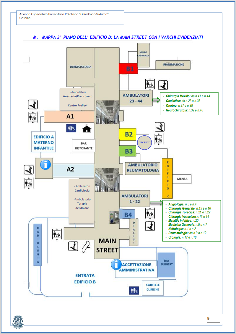 •     All’interno dell’Edificio B, precisamente all’ingresso dell’U.O. Dialisi e dei varchi B3 e B4.