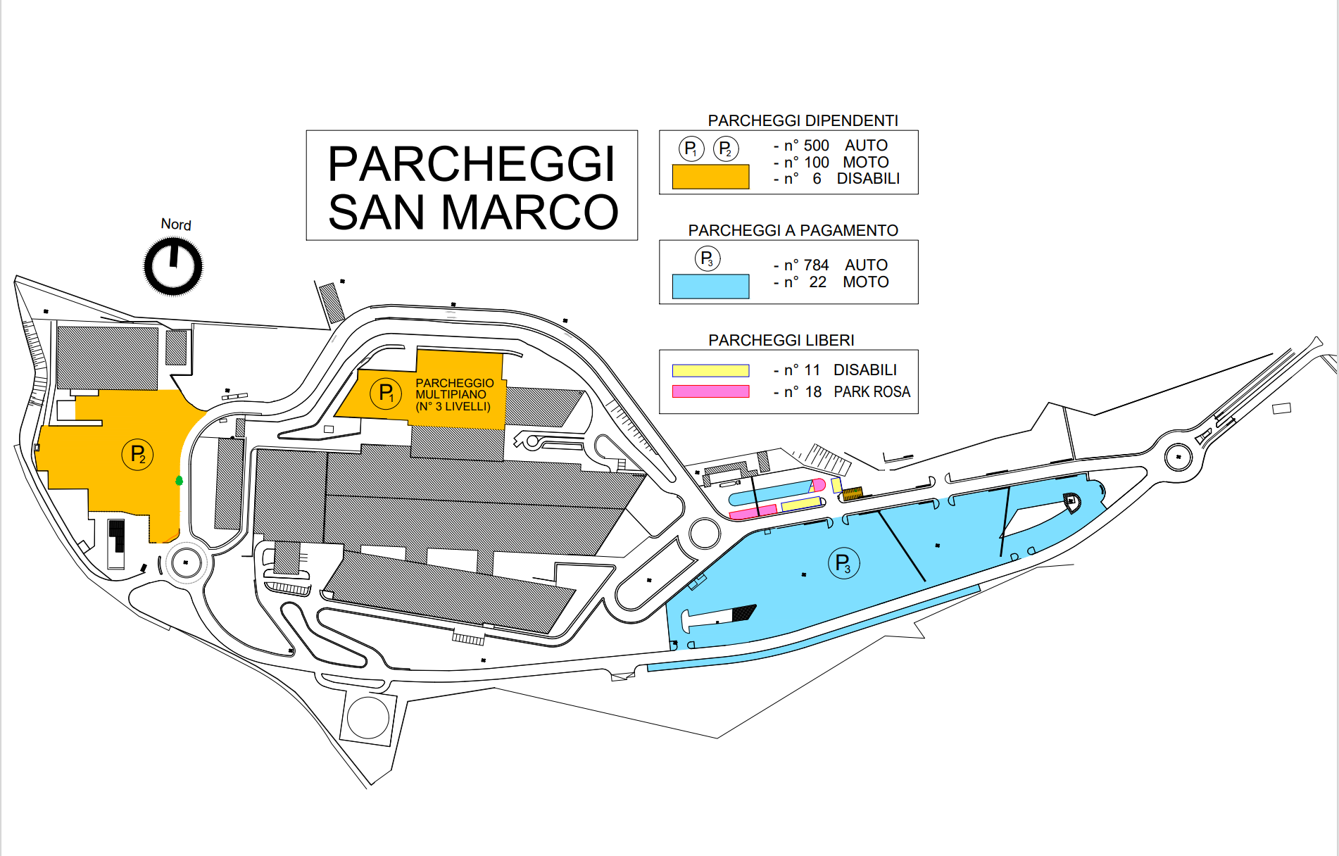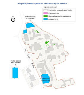 All’interno dei presidi ospedalieri sono previste aree destinate esclusivamente alla sosta dei veicoli del personale dipendente, all’utenza esterna (pazienti, accompagnatori e visitatori, specializzandi, informatori medico-scientifici), nonché al personale delle aziende fornitrici di beni e servizi. La sosta è consentita esclusivamente negli stalli destinati alle varie categorie di aventi diritto.