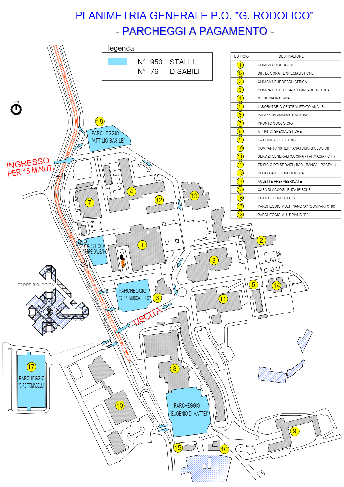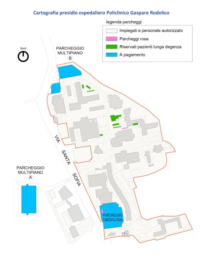 •    Parcheggio “Prof. Giuseppe Galeano” con ingresso da Via S. Sofia n. 86, adiacente al Pronto Soccorso Generale (con 56 stalli);